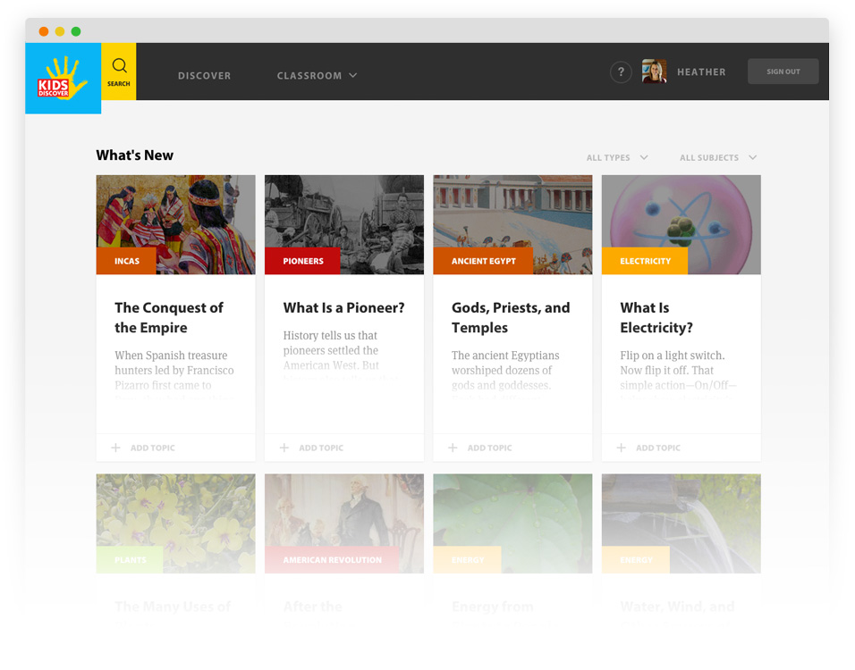 We’re all born with an innate curiosity. Sometimes all we need is a little inspiration to tap into it. Our homepage is an endless feast of science and social studies material. Explore over 1,000 engaging topics, discover new interests, and get inspired about the world in which you live.