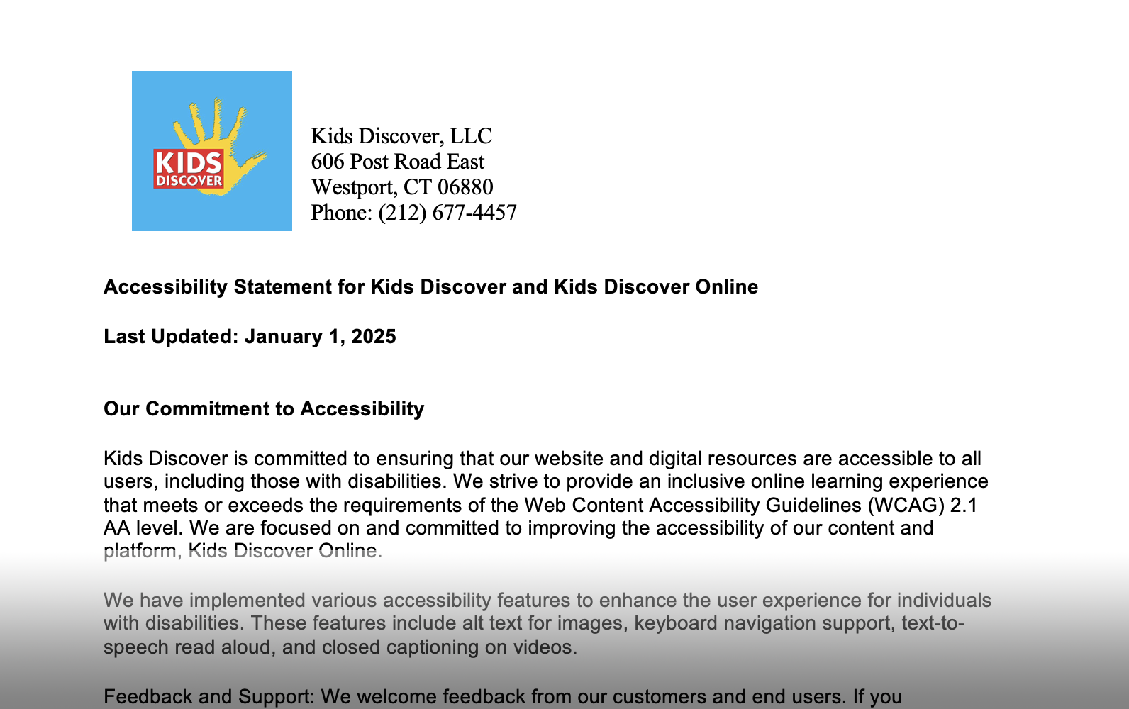 Kids Discover is committed to ensuring that our website and digital resources are accessible to all users, including those with disabilities.