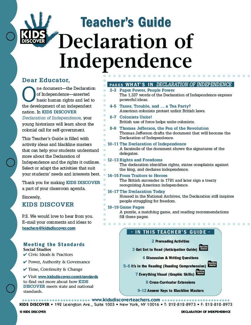 Teacher's Guide: Kids Discover The Declaration