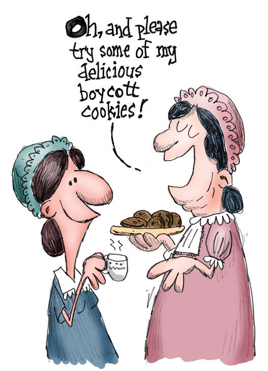 Penelope Barker invited 51 women to her home in Edenton, North Carolina. They signed a petition not to buy British goods or drink British tea. The Edenton tea party reminded Americans that everyone could take part in political action, even if they couldn’t vote. ▶