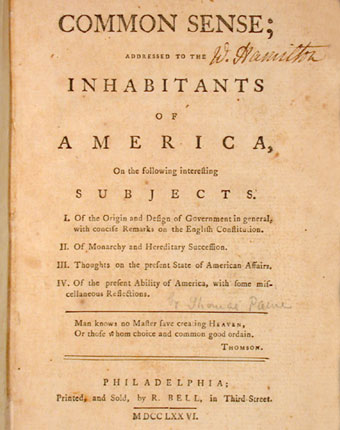 ▲ Englishman Thomas Paine’s little pamphlet Common Sense helped spark the revolution. Written in simple language, it explained why the colonists should seek independence. It was very popular. It sold half a million copies in just a few months. George Washington said, “Common Sense is working a powerful change in the ideas of men.”