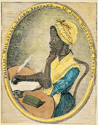 ▲ In 1776, at age eight, Phillis Wheatley was kidnapped in Africa. She was taken to the colonies on a slave ship. Boston tailor John Wheatley bought her as a servant. She was taught to read and write. Wheatley wrote patriotic poems that were widely read in 1776. One of her poems honored General George Washington. After reading it, he invited her to visit him at army headquarters.