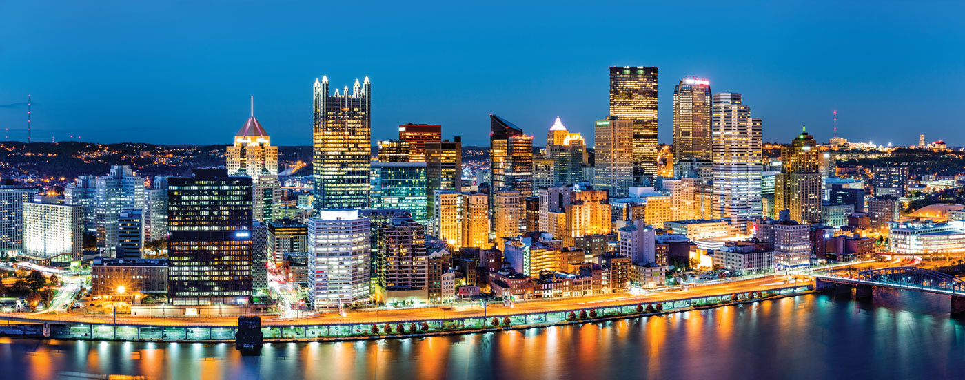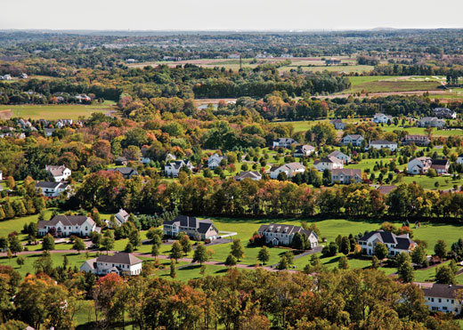 ▲ Mount Lebanon, Pennsylvania, is a suburb only about nine miles from Pittsburgh. A suburb is a smaller city or town near a large city. Mount Lebanon was once a farming community, but in the early 1900s, a streetcar line connected it to Pittsburgh. Since then, lots of people have moved to Mount Lebanon. These residents travel to work in Pittsburgh each day by train, bus, and car. Today, about 33,000 people live there.