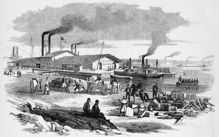 Cairo, in southern Illinois, was a staging area for the war. Located where the Ohio and Mississippi Rivers meet, it became a supply center and a training ground. Union soldiers from Chicago arrived, as did Pro-Union people from Kentucky. A writer for the local newspaper said this: “The town is full of strangers, and newspaper correspondents are almost as plentiful as soldiers.” Still, there were those on the side of the South. ▶
