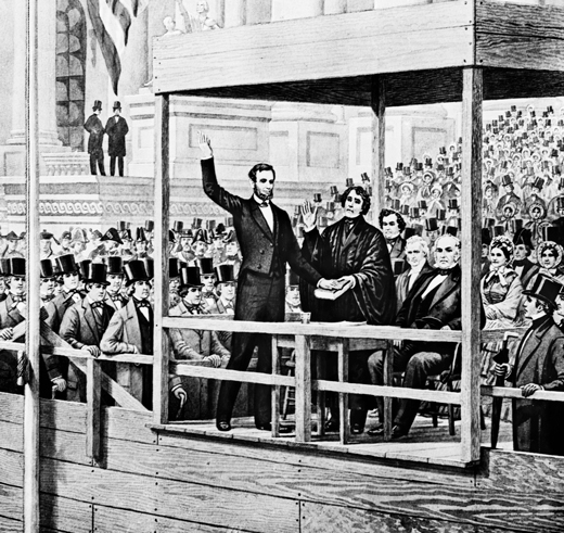 A large crowd gathered at the U.S. Capitol for Lincoln’s inauguration in January 1861.