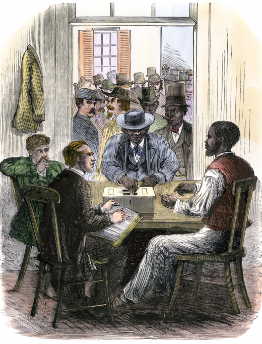 The Civil War ended on April 9, 1865, and the country was whole again. But five days later, President Lincoln was assassinated. The process of healing the country fell to Lincoln’s vice president, Andrew Johnson. During this period, known as Reconstruction, many Black people moved to Chicago. Black men got the vote. And the Black Laws in Illinois were abolished. Johnson, however, was sympathetic to the South and allowed southern states to set up their own “black codes.” ▶