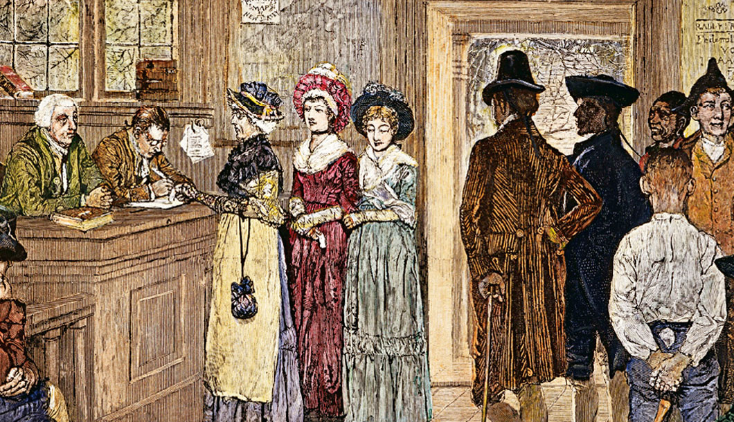 ▲ During the Revolution, New Jersey gave women who owned property the right to vote. But the New Jersey legislature took away this right in 1807. It was assumed that married women, who had no property in their own names, would be represented by their husband’s vote. So only single women could vote in New Jersey. All women would not get the vote until 1920.