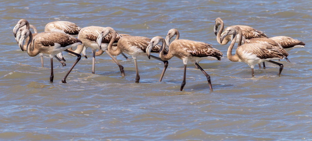 ▲ Flamingos’ bulky body and long legs and neck make it challenging for them to lift off into the air. They start by facing into the wind so when they’re ready to take off, the oncoming air can rush in under their wings. They run and flap their wings to build up speed. And off they go!