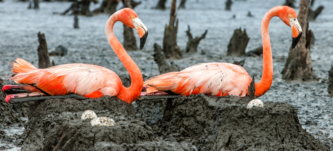 In flight, flamingos stretch out their neck and legs to make an arrow-like shape so they can slice through the air more easily.