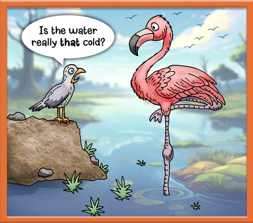 Flamingos lose heat through their legs. That’s why they often alternate standing on one leg and then the other – especially in cold weather. The leg that’s tucked under their body rests and stays warm. When flamingos are in water, the one-leg stand also reduces their contact with parasites that may harm them. ▶