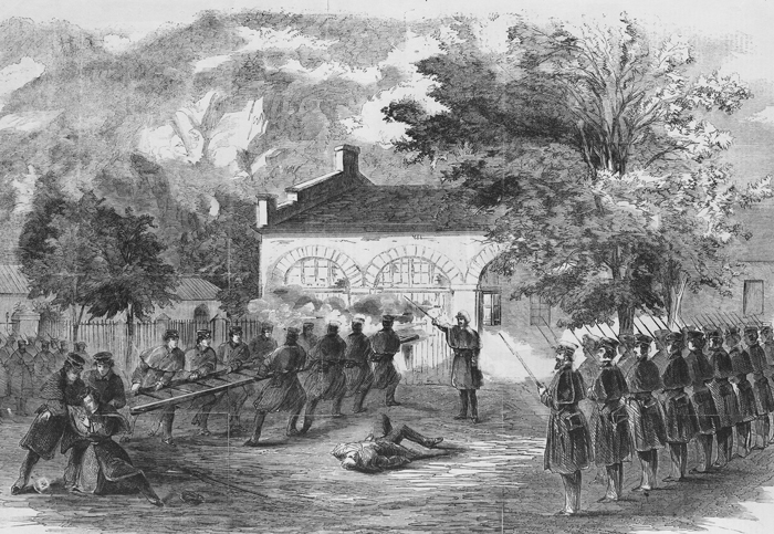 ◀ John Brown was an abolitionist – someone who opposed enslavement. On October 16, 1859, he and a group of 20 people led a raid on a federal armory in Harpers Ferry, Virginia. (An armory is a place where weapons are kept.) The raid was intended to start a rebellion among enslaved people. But hundreds of local militiamen arrived to fight off the raiders. As did Colonel Robert E. Lee and 90 marines. (Militiamen were citizens with some military training.) A newspaper of the time describes the raid and predicts the future this way: