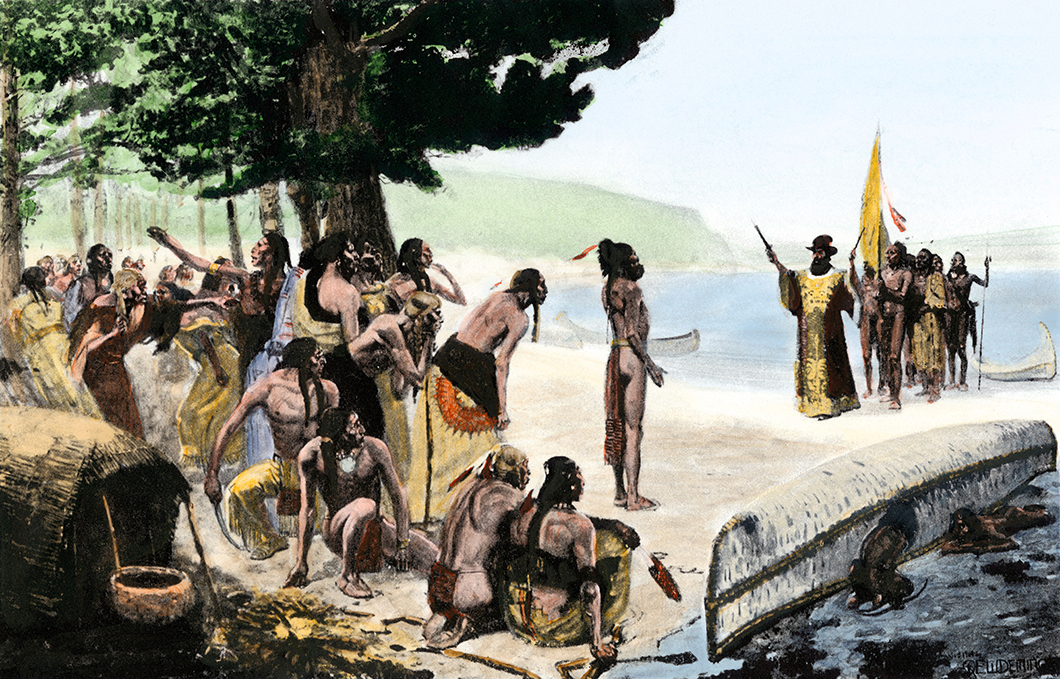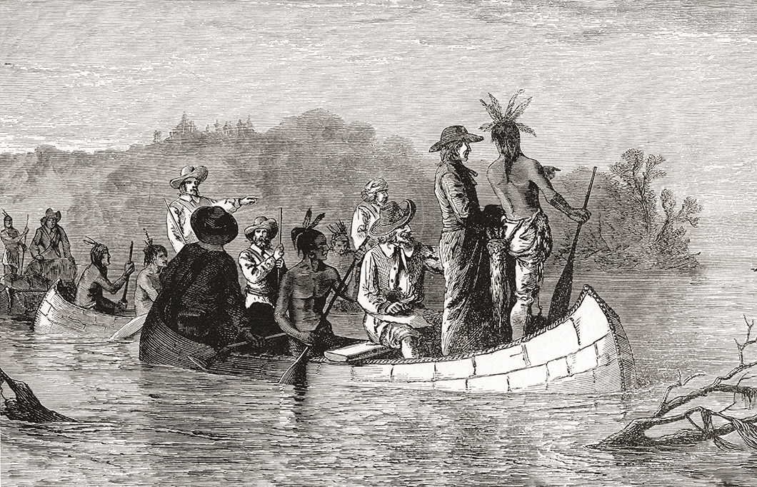▲ Most historians say Jean Nicolet was the first European to explore present-day Wisconsin. Perhaps his goal was to find a way to reach the Pacific Ocean. Perhaps it was to trade with Indigenous peoples. In 1634 Nicolet traveled south along the western shore of Lake Michigan. He made it to Green Bay. A Jesuit priest and friend of Nicolet wrote this about a meeting with Indigenous peoples: