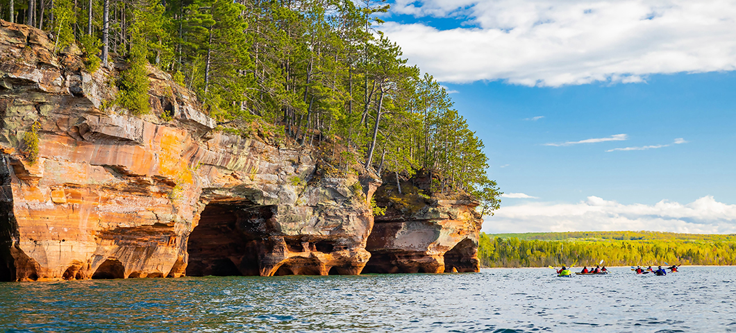 Off the shore of Lake Superior are 22 islands. They’re known as the Apostle Islands. The islands are famous for their sandstone sea caves and their lighthouses. All but one are part of the Apostle Islands National Lakeshore, which has one of the largest collections of lighthouses in the country.