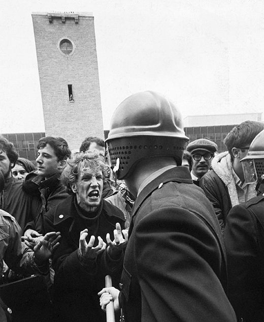 The United States went to war in Vietnam to stop the spread of Communism. Communism is a system where the government – not individual people – owns things like factories and farms. Many people in the U.S. were against the war. Especially college students. Students at the University of Wisconsin–Madison were at the center of antiwar protests. These included demonstrations and strikes. Students wanted to end the draft. (The draft is when the government forces citizens to join the military.) The protests wound down in the 1970s as the war drew to a close. ▶
